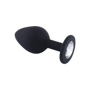 - Large BLACK Silicone butt plug with CLEAR Jewel Log in to see prices