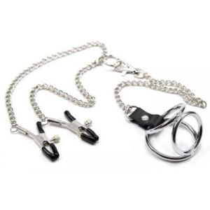 - Chain Nipple Clamps with Triple Cock Ring MEDIUM Log in to see prices